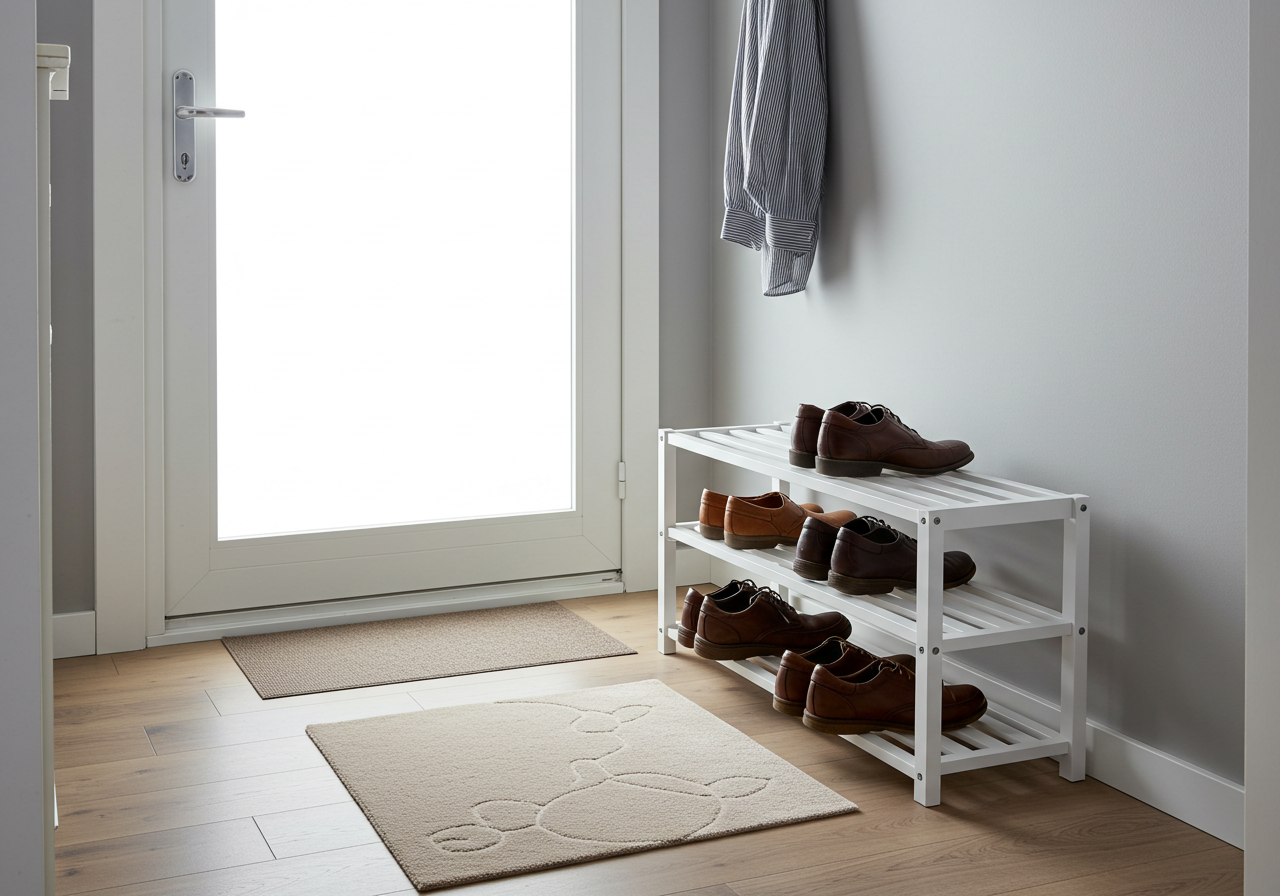 현관에 신발 정리대를 두고, 자주 신는 것만 2~3켤레 보관하세요.