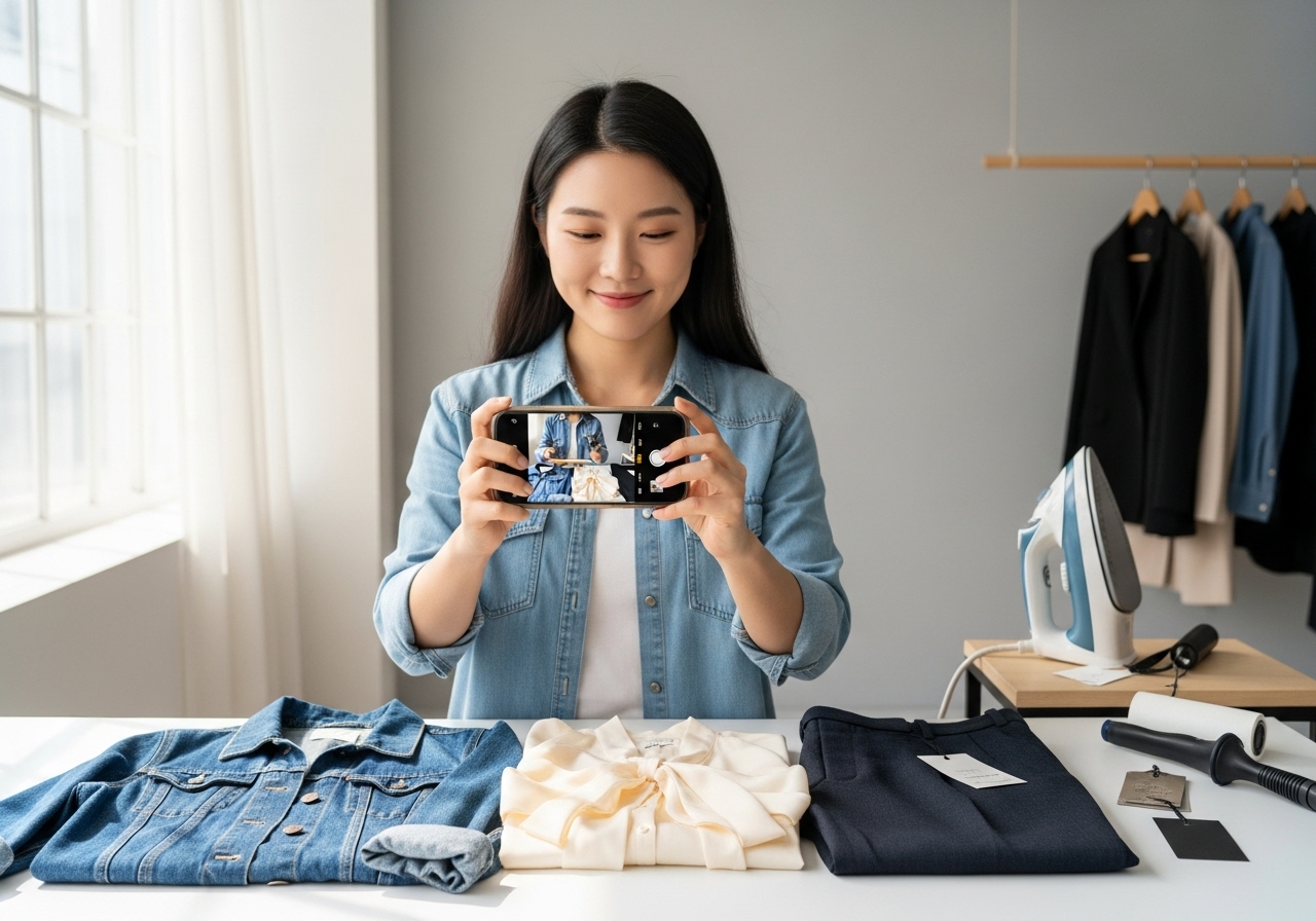 자연광에서 촬영하고, 옷의 앞뒤와 세부사항까지 보여주는 게 좋습니다.