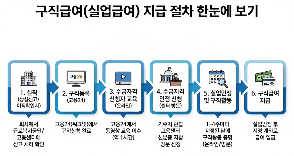 - 구직 활동 및 급여 수령: 이후 지정된 날짜마다 실업 인정을 받으면 급여가 입금됩니다.